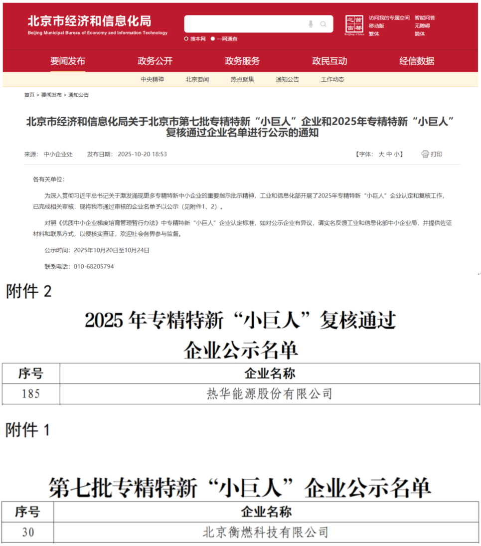 企業(yè)新聞 | 國家級認(rèn)可!熱華能源與北京衡燃科技雙雙榮獲國家級專精特新“小巨人”