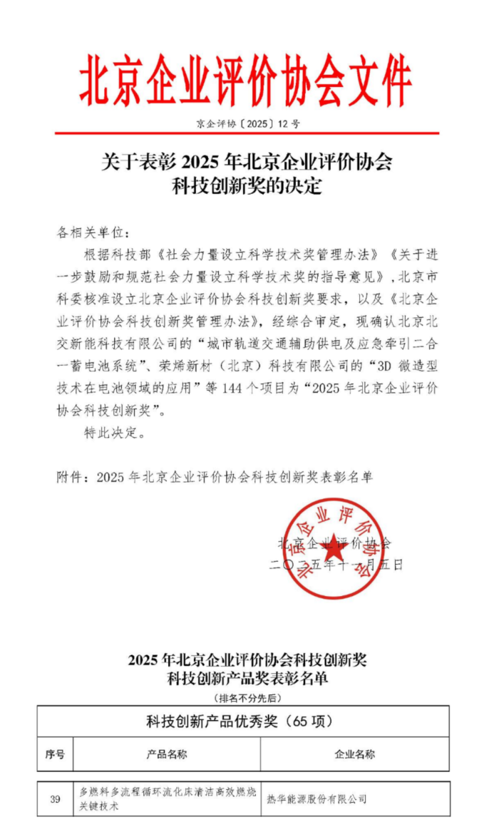 企業(yè)新聞 | 榮譽(yù)再加成!熱華能源榮獲2025年北京企業(yè)評價(jià)協(xié)會科技創(chuàng)新產(chǎn)品獎